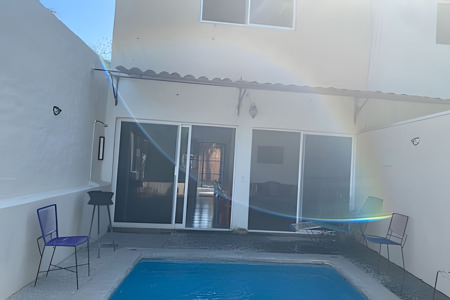 C10 Relájate con toda la familia en este alojamiento donde podrás disfrutar cómodamente de alberca privada, 2 recamaras 5 camas (4 matrimoniales, 1 individual) 2 baños, WiFi, cable, A/A, cochera (1 auto) cocina, comedor y barra independientes, la casa se encuentra muy cerca de la playa en una colonia popular y algunas de las calles son de tierra, a 4 km de Guayabitos y a 6 km. de los Ayala y a 1.8 km del centro de la Peñita de Jaltemba un punto estratégico para realizar tus próximas vacaciones
