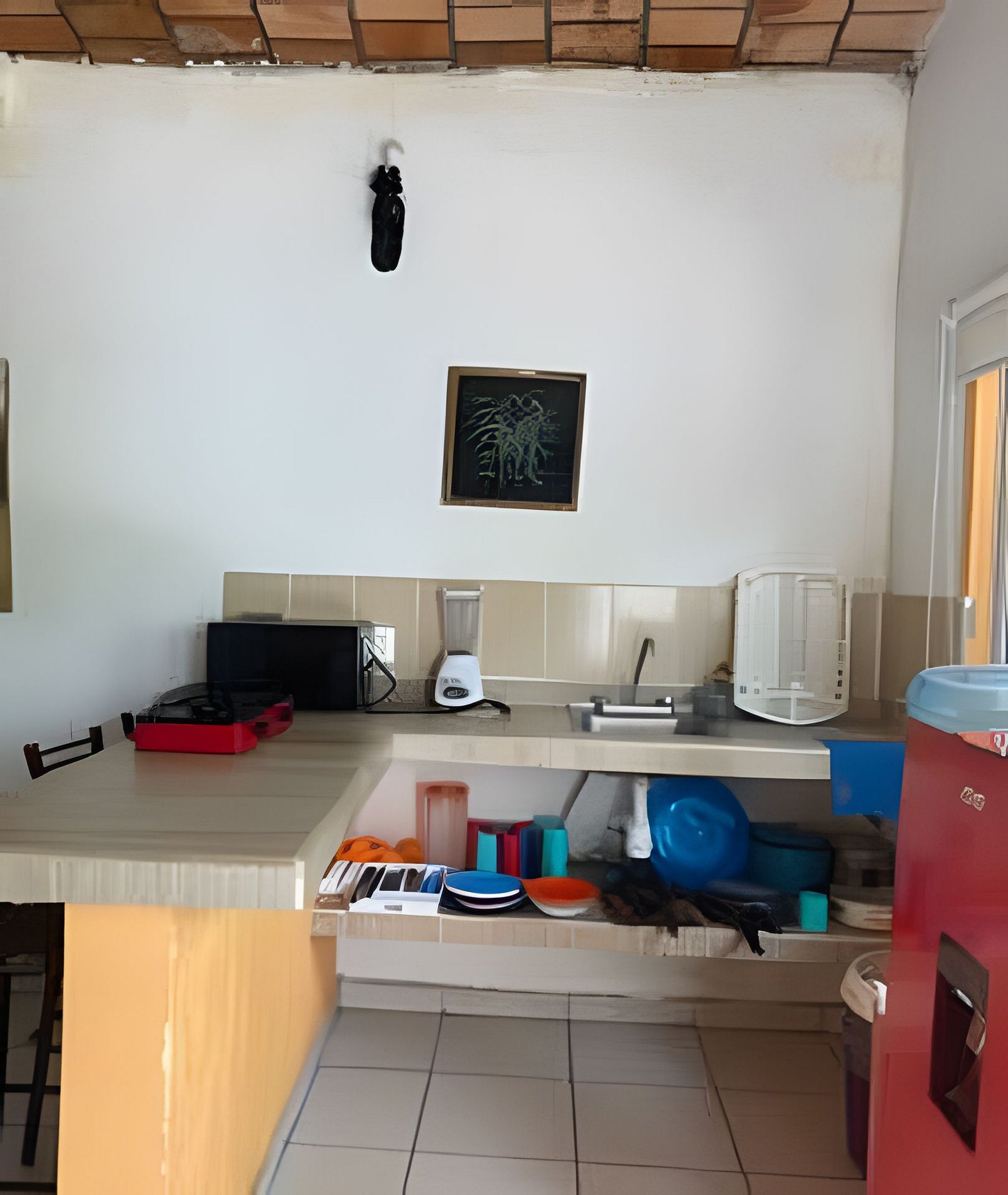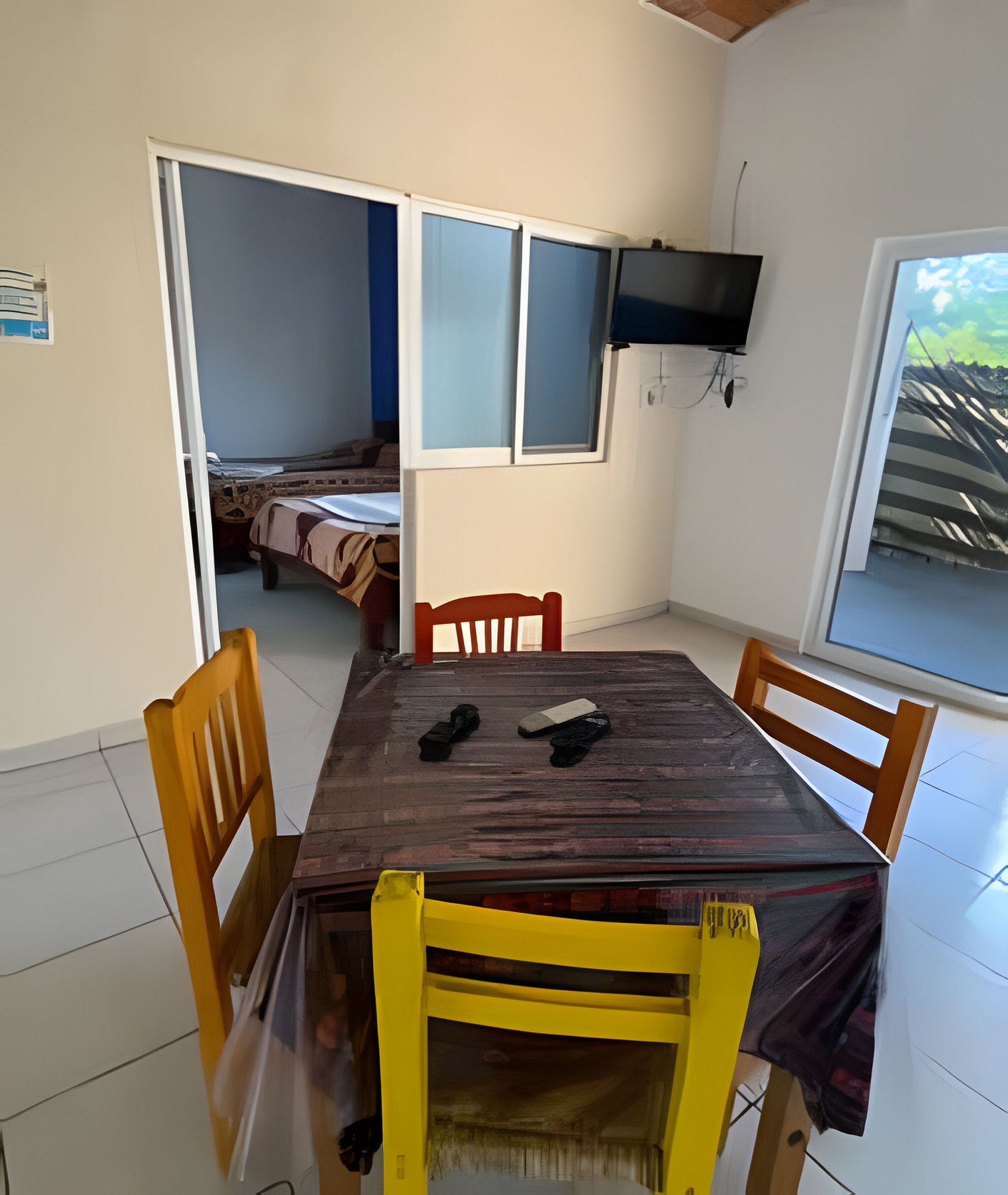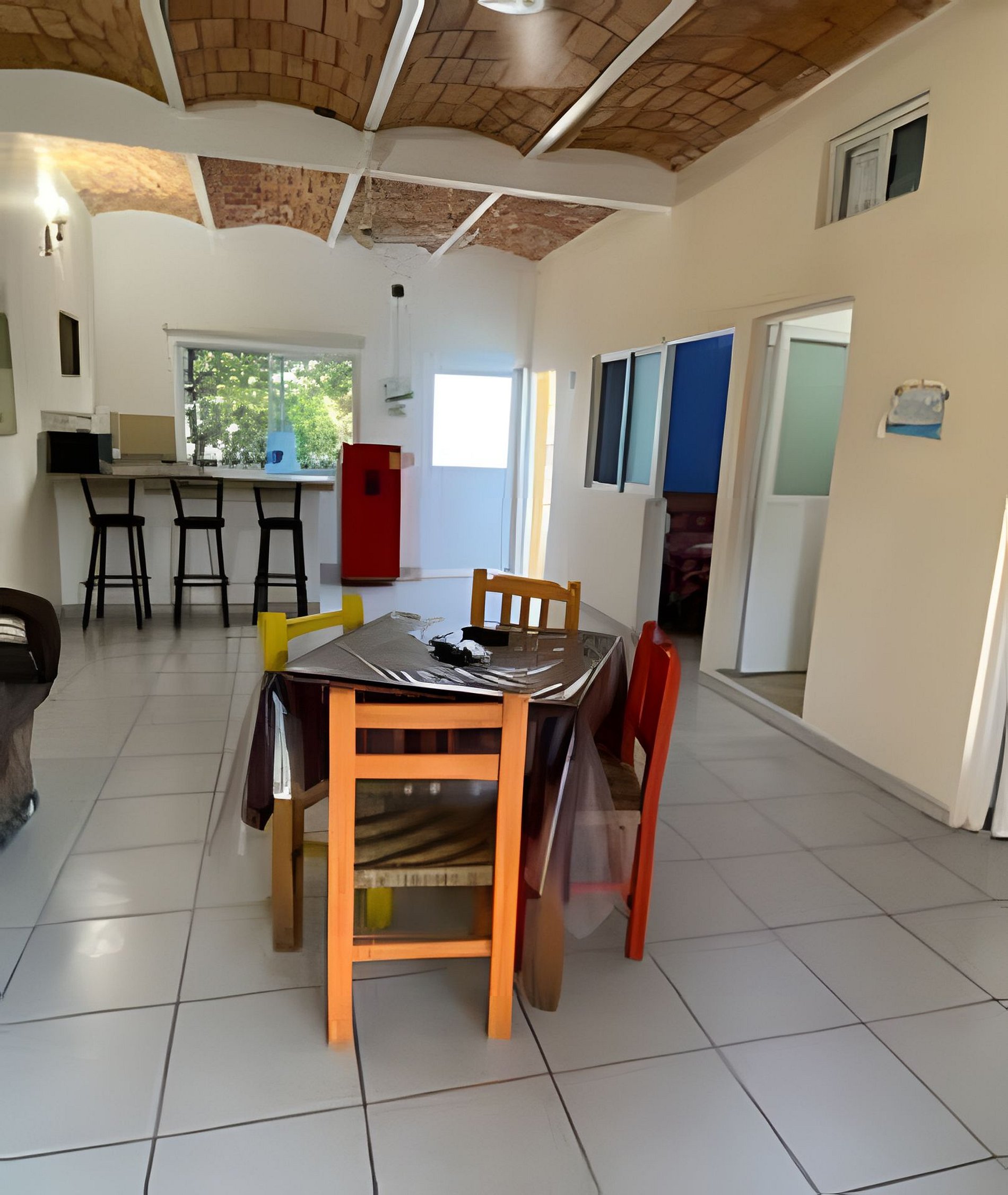 C4 Casa nueva en segundo nivel, para 8 personas, con alberca en la terraza, tiene una profundidad de de 1 mts. y mide 2X4 mts. Tiene dos recamaras cada una de ellas con dos camas matrimoniales, tiene un sofa cama, cocina, barra desayunadora, comedor, hamaca, terraza, aire acondicionado, a un lado de la casa tenemos espacio para estacionar un auto. La casa se encuentra en una colonia popular donde algunas calles son de tierra.