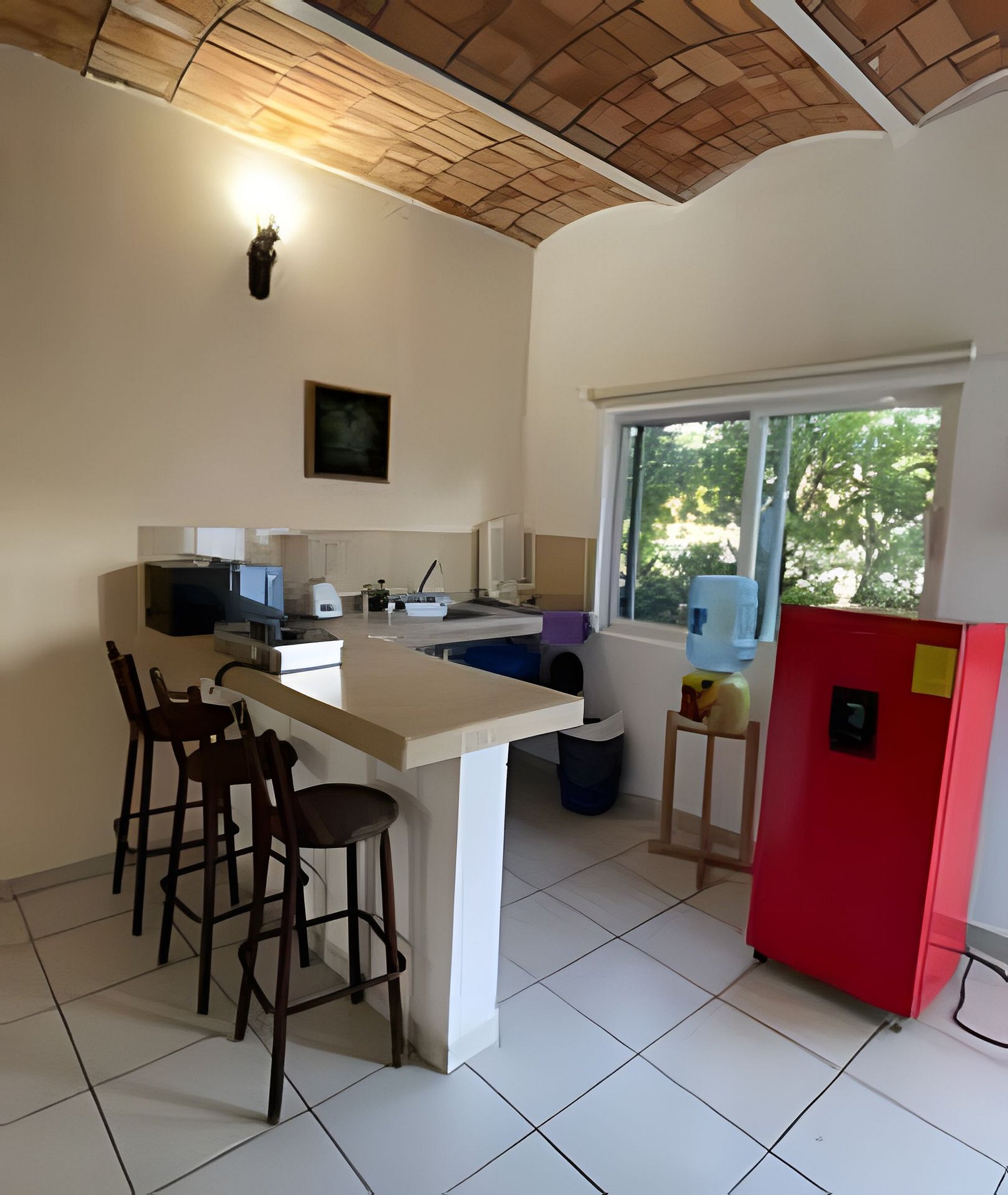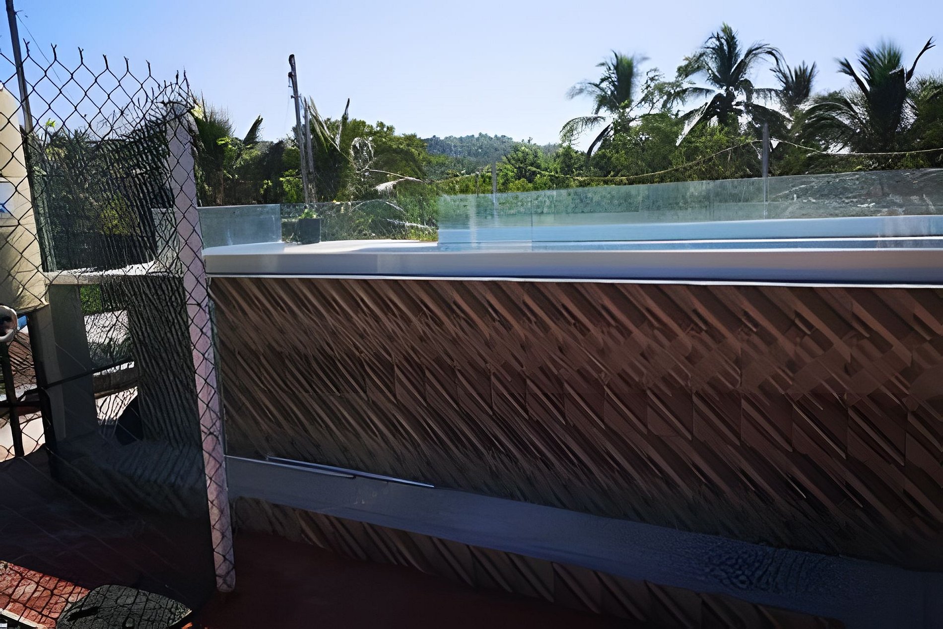 C4 Casa nueva en segundo nivel, para 8 personas, con alberca en la terraza, tiene una profundidad de de 1 mts. y mide 2X4 mts. Tiene dos recamaras cada una de ellas con dos camas matrimoniales, tiene un sofa cama, cocina, barra desayunadora, comedor, hamaca, terraza, aire acondicionado, a un lado de la casa tenemos espacio para estacionar un auto. La casa se encuentra en una colonia popular donde algunas calles son de tierra.